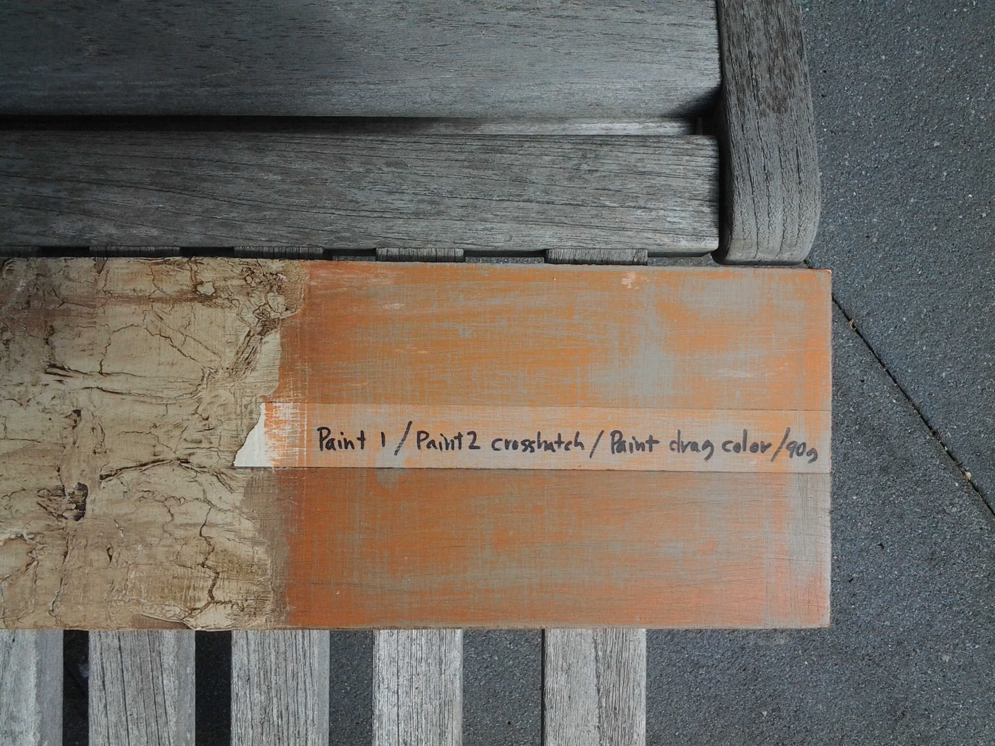 I used 90 grit in cross hatch to create a linen look on sample. This distressing can be applied wherever a worn look is desired on the piece.