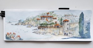 A week of learning perspective sketching and how to use watercolor to enhance the view.Day two