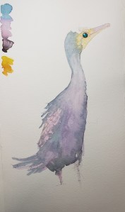 In our class this past Saturday we learned to layer colors to achieve a dark color bird without using all black washes.