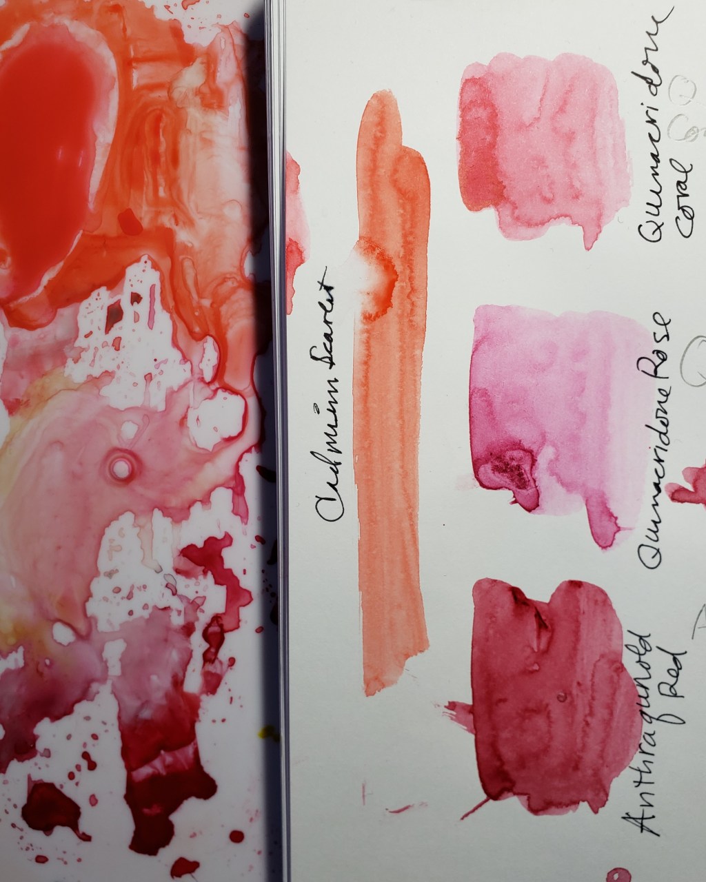 This week was my final bird painting class for awhile. The subject was the flamingo and the colors used all have fancy names so in addition to the watercolor sketches we have some color information.