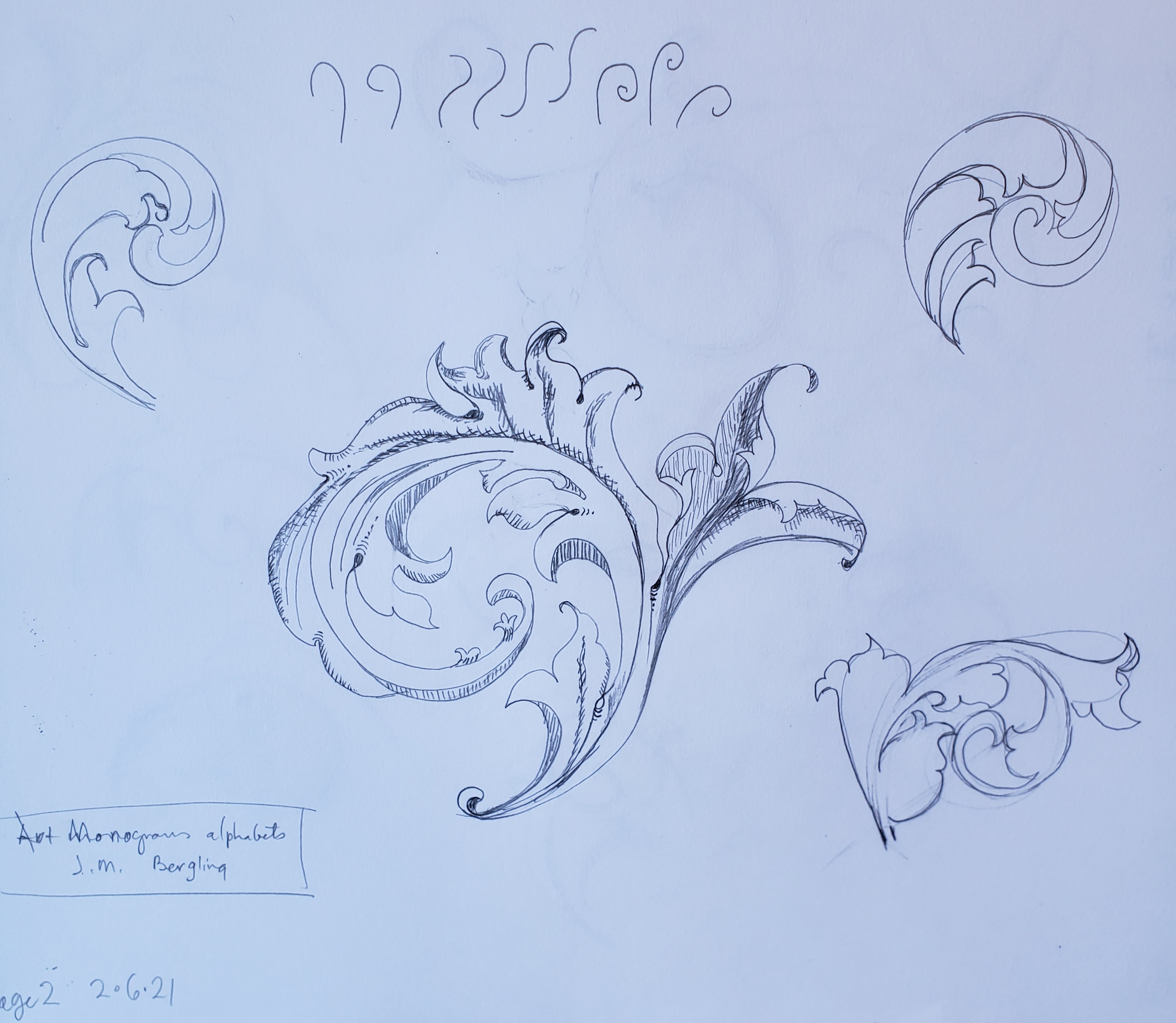 The 3 main strokes of scrollwork are a hook, an S and a curl. As my ‘botanical year’ grows into another year, I have identified scrollwork as an art built from ‘plants’. So scrolling, flourishing, leaf lettering and more will be added to my studio routine.
