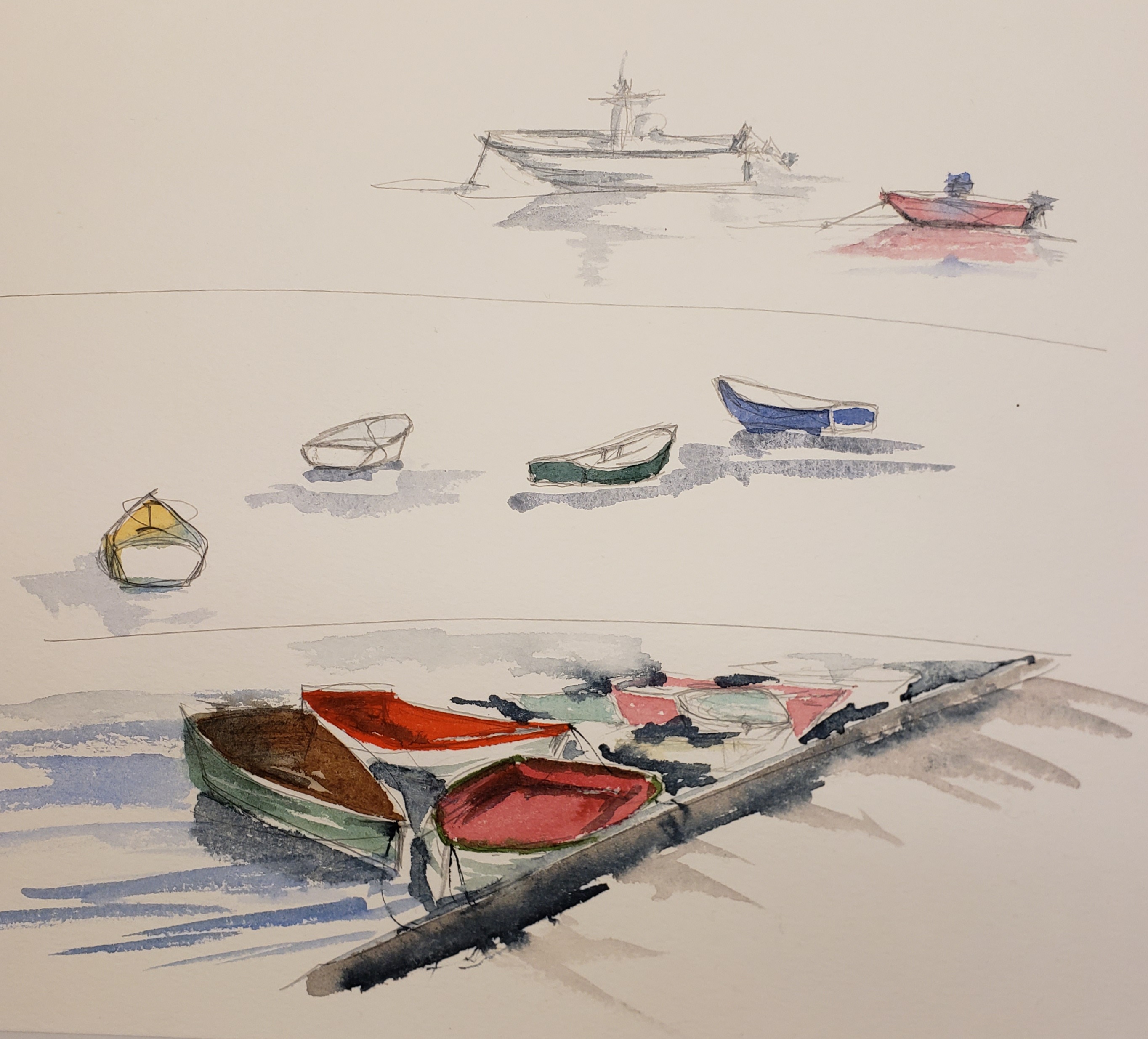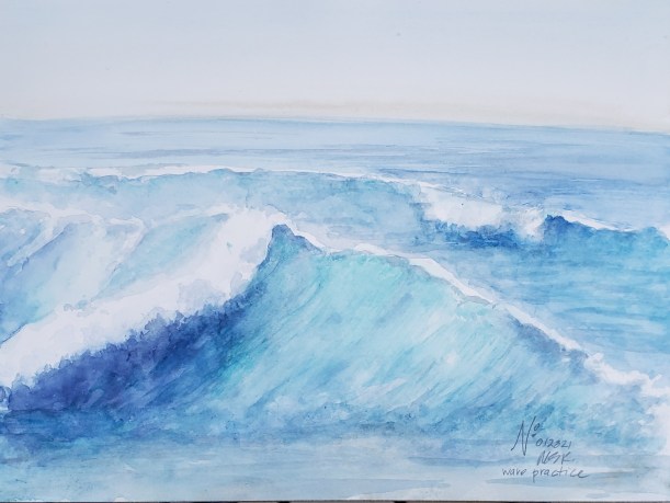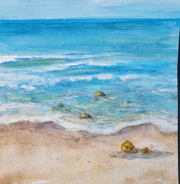 With four lessons on the components of a watercolor seascape now on my palette approaching the water will be a bit more organized. I look forward to hitting the beach with my new skills!
