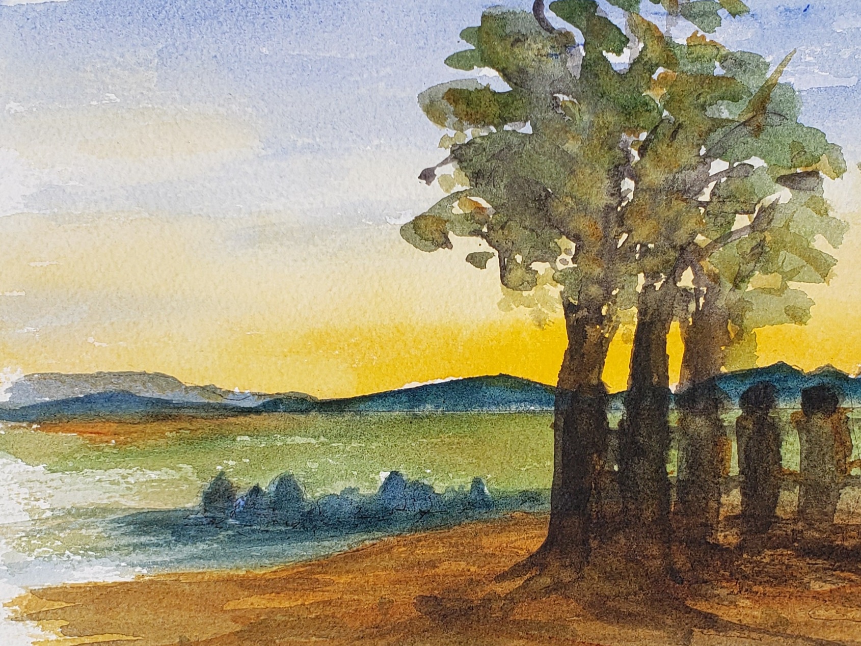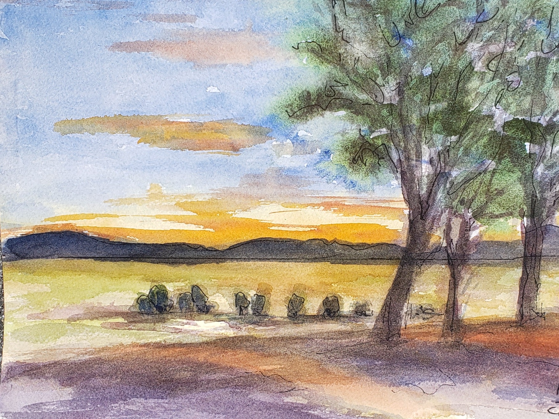 Color Week 21 came about as a friend and I were walking back from dinner on what was one of the 1st really warm days of the year. In search of a color topic of the week, my friend who is also a sketcher, suggested the color of the sky in those fleeting minutes around the sunset. She had recently started to work on a sketch of the sunset as seen through her window. A perfect way to dive into ‘warm colors’.