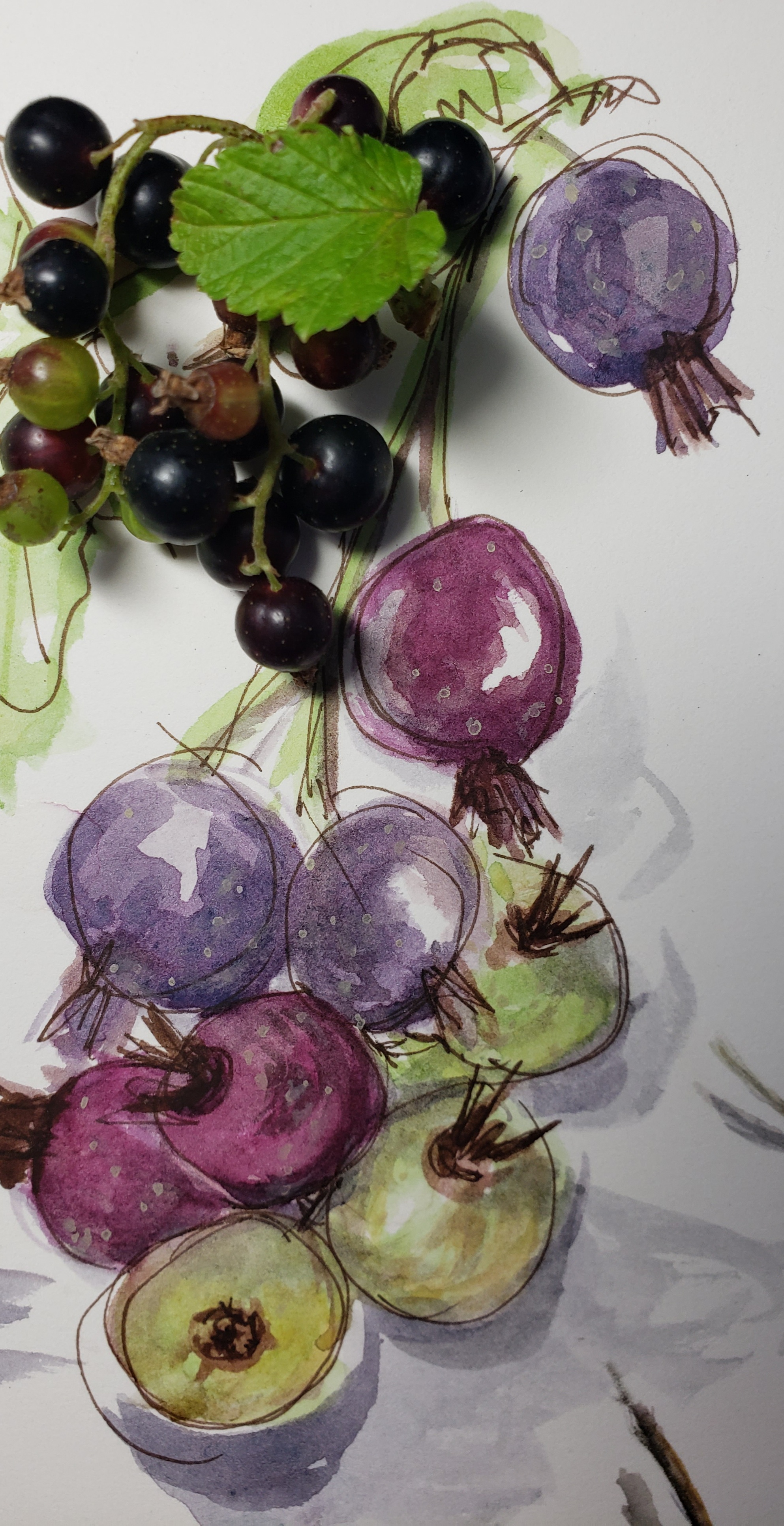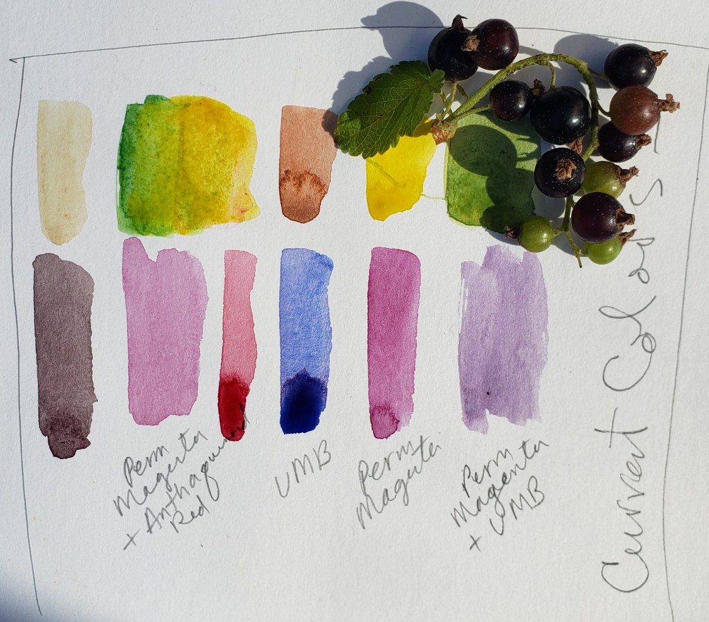 Permanent Magenta is the key for achieving the mix of colors of the ripening black currant berries. The color magenta has a history equal to the black currant plant. The name derives from the town Magenta Italy where an important military battle was won concurrent to the color discovery.