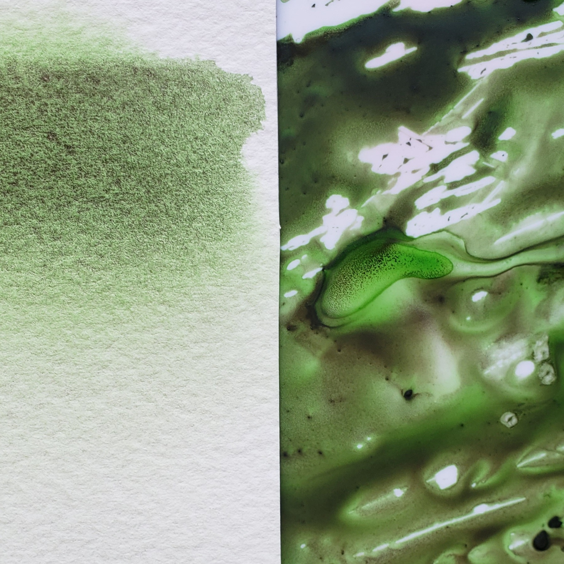 Green Apatite Genuine is goreous for foliage…is a fabulous granulating watercolour…moves from brighter greens in soft dilutions to rich olive greens in masstone…