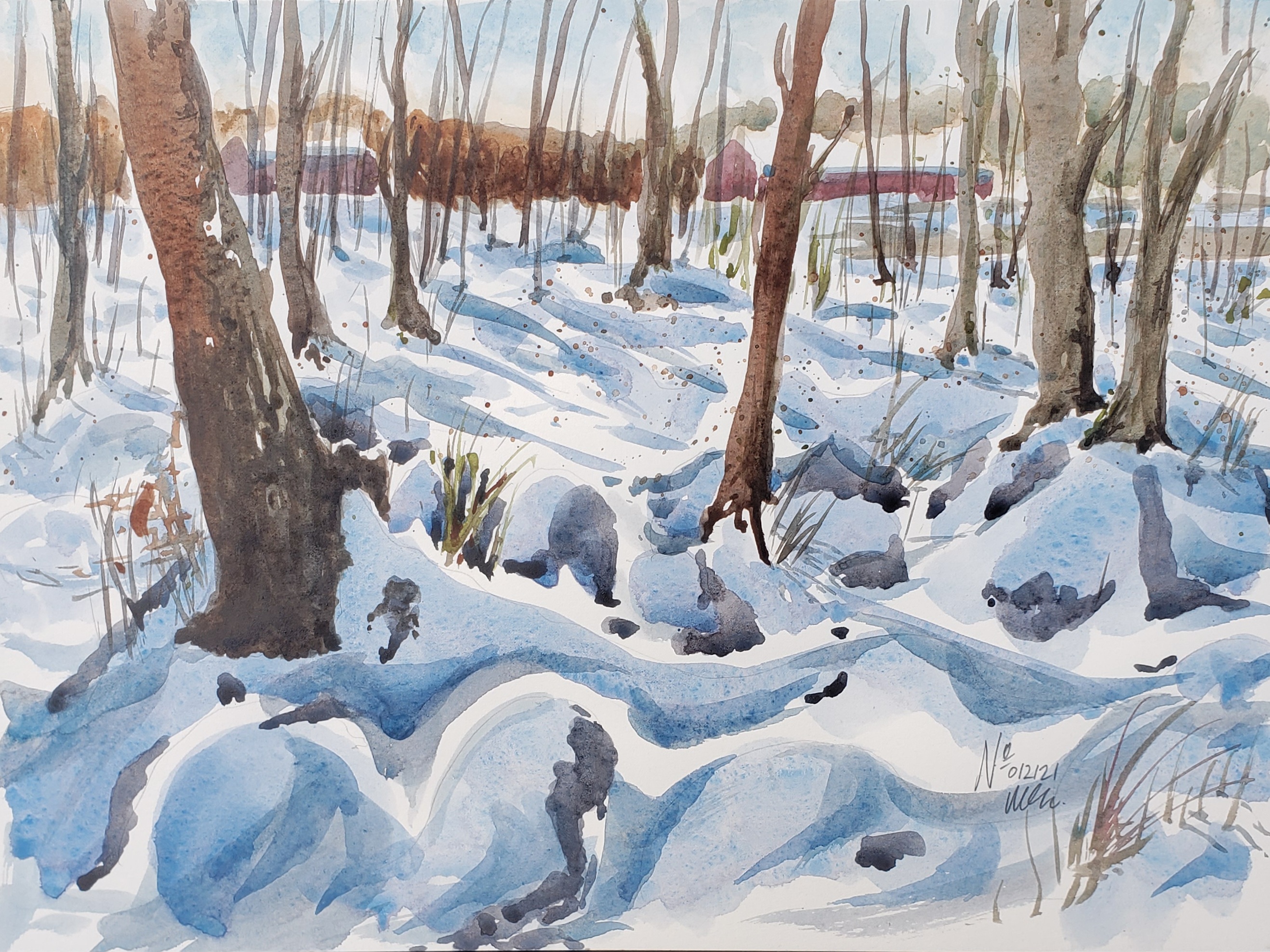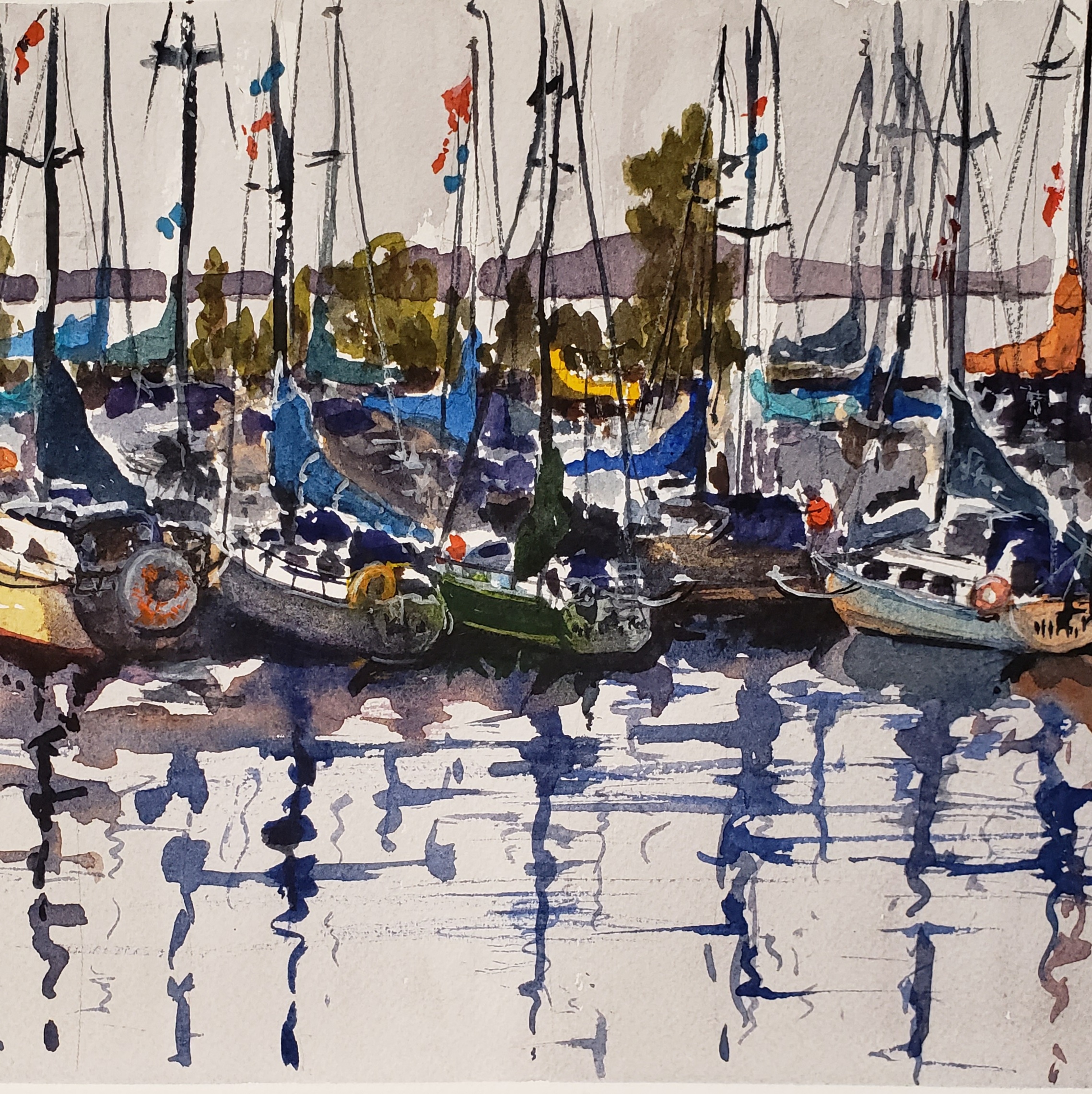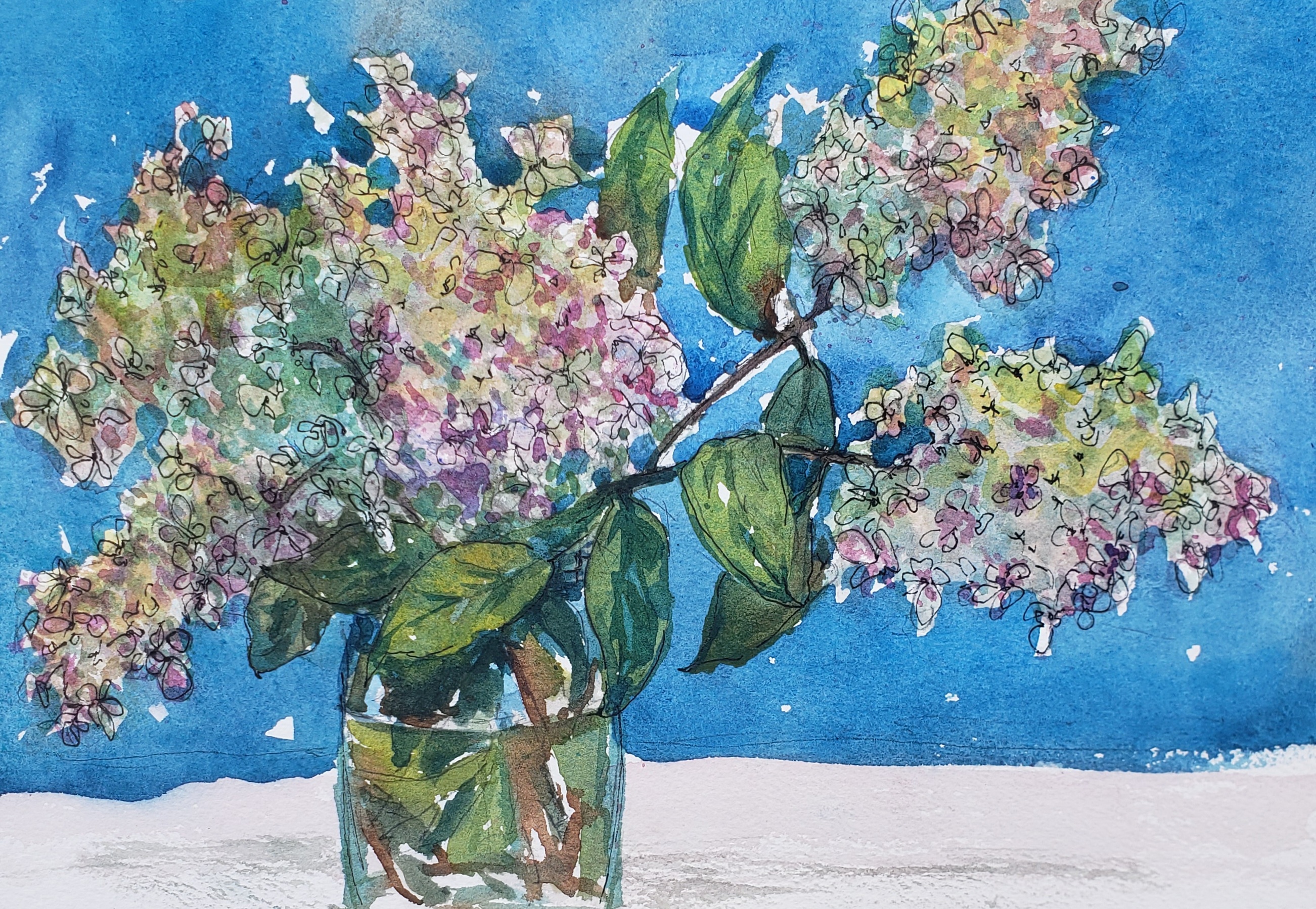 In a watercolor palette today you can typically find a Phthalo Blue. Daniel Smith Phthalo Blue (green shade) is the color used in this post. Defined as color for cool, clean staining shadows and reflected light on windows. Winsor Newton defines their Phthalo as a deep intense blue. M Graham is defined as a brilliant green shade blue. Vibrant and very strong. As a note, M Graham paints are made with pure honey and do not dry up!