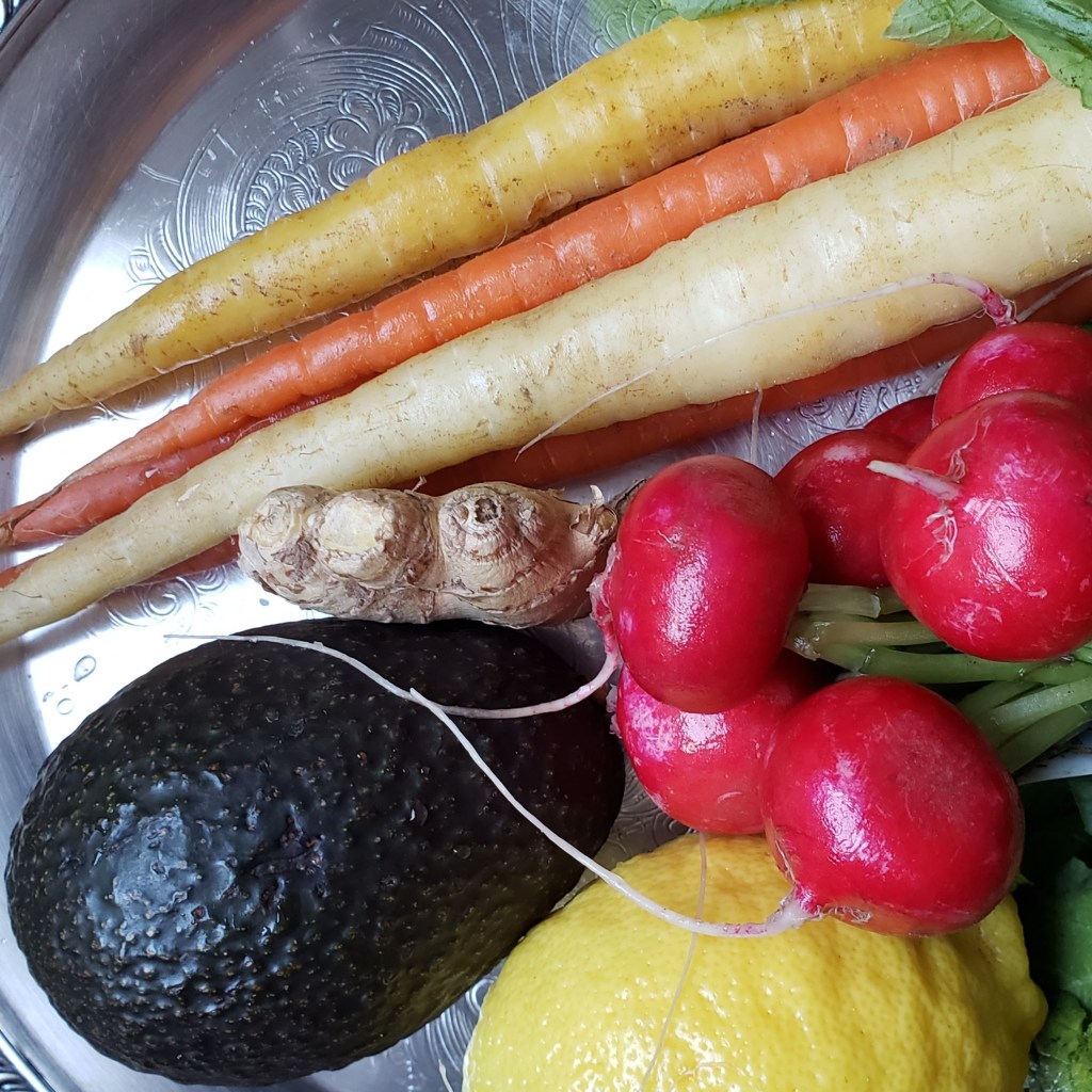 As I have a curiosity about color for this weekly post, he got my attention. I went to the fridge to see how many colors of fresh food were on hand …