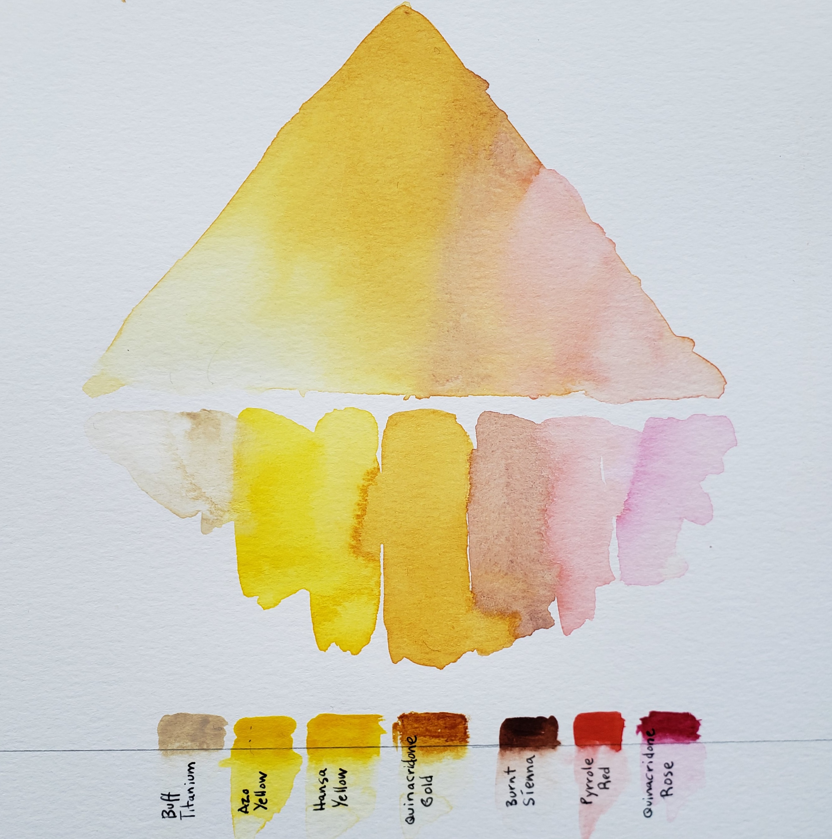 My color challenge this week was to find the watercolors to reproduce the gold alloy chart – a good practice in mixing.