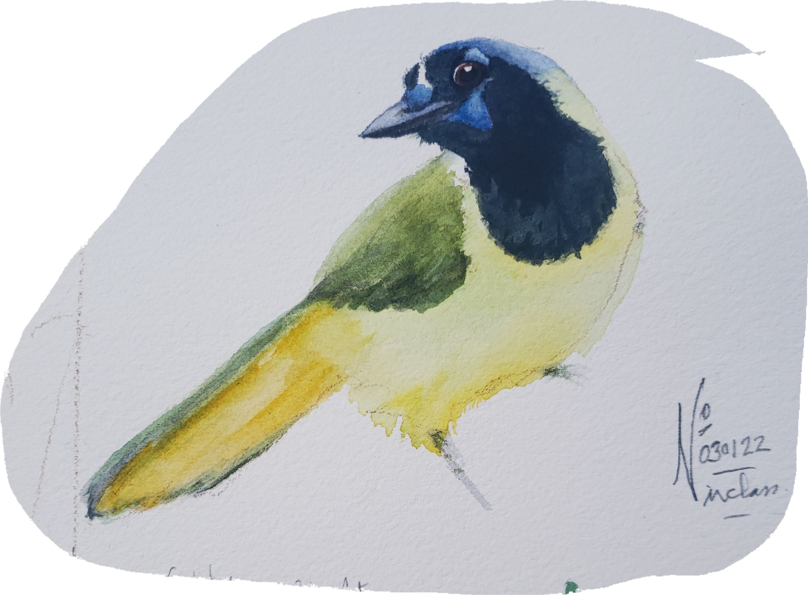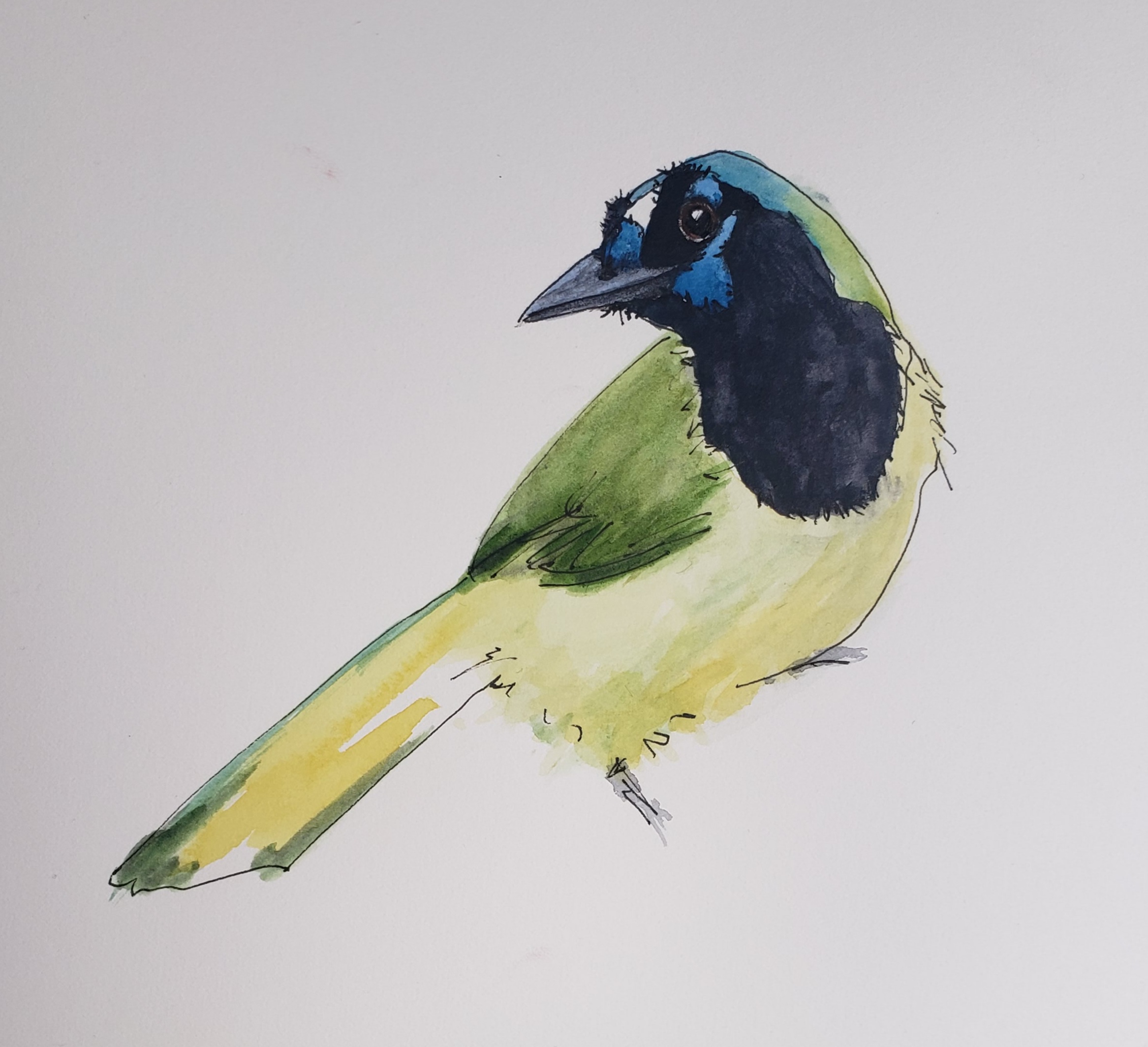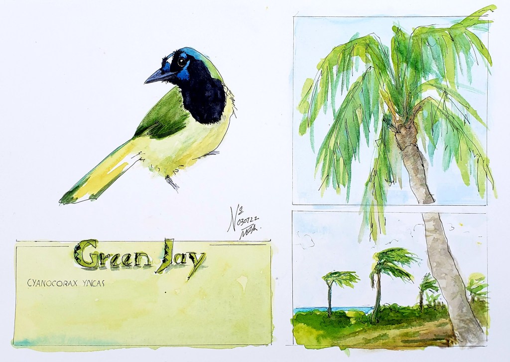 Starting with the Green Jay! Three slightly varied versions sketched in class this week with Ian de Hoog.