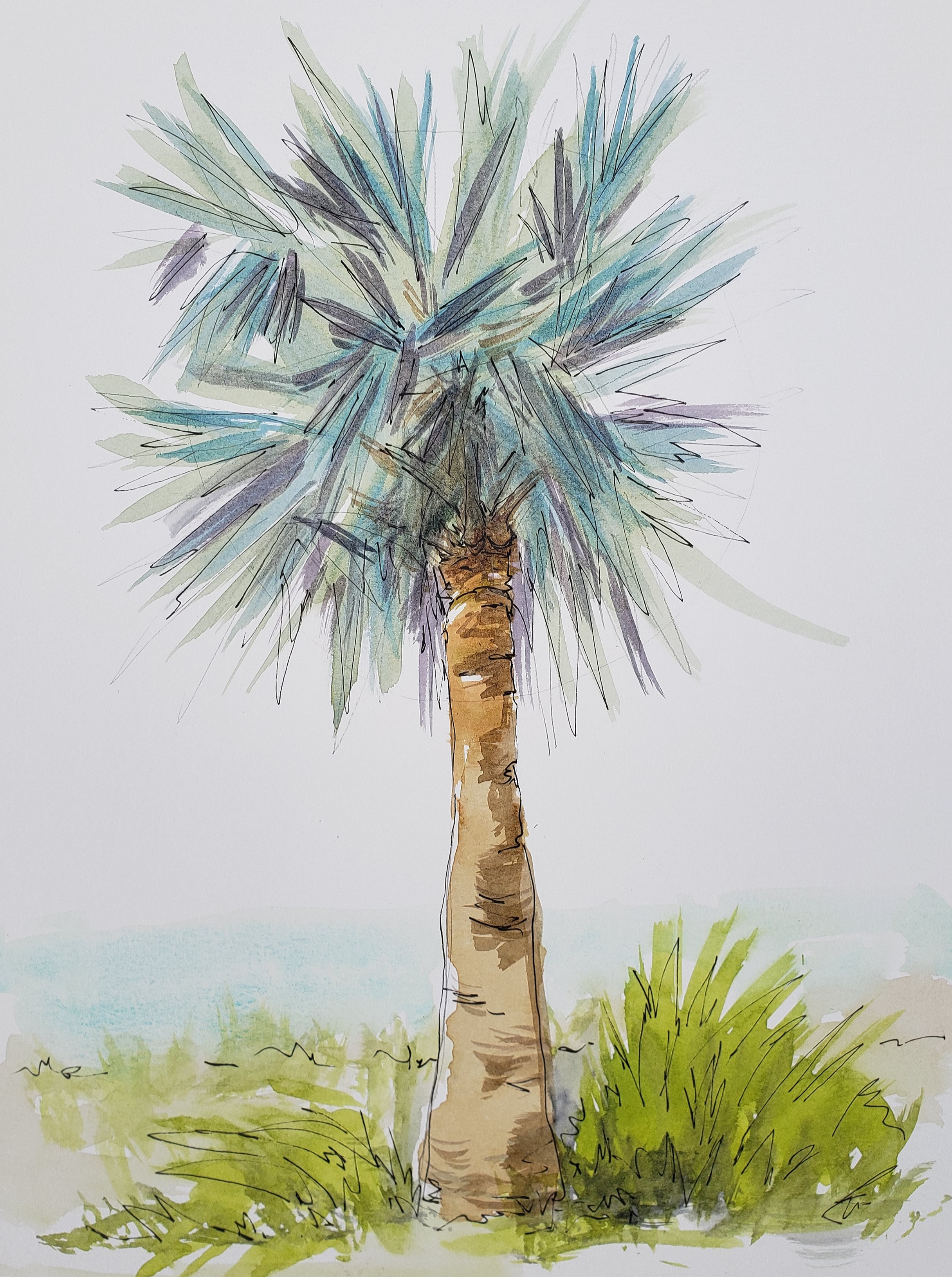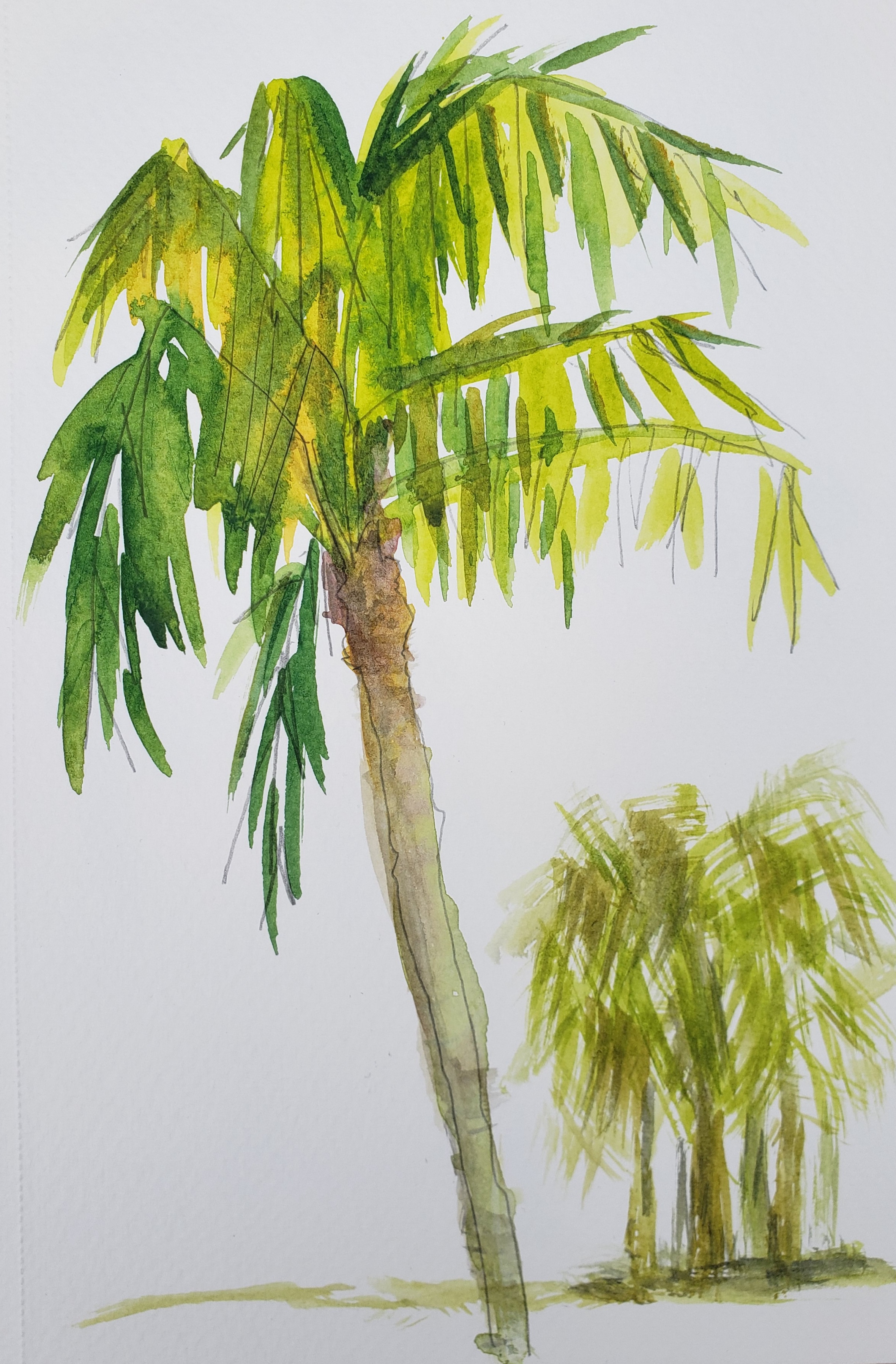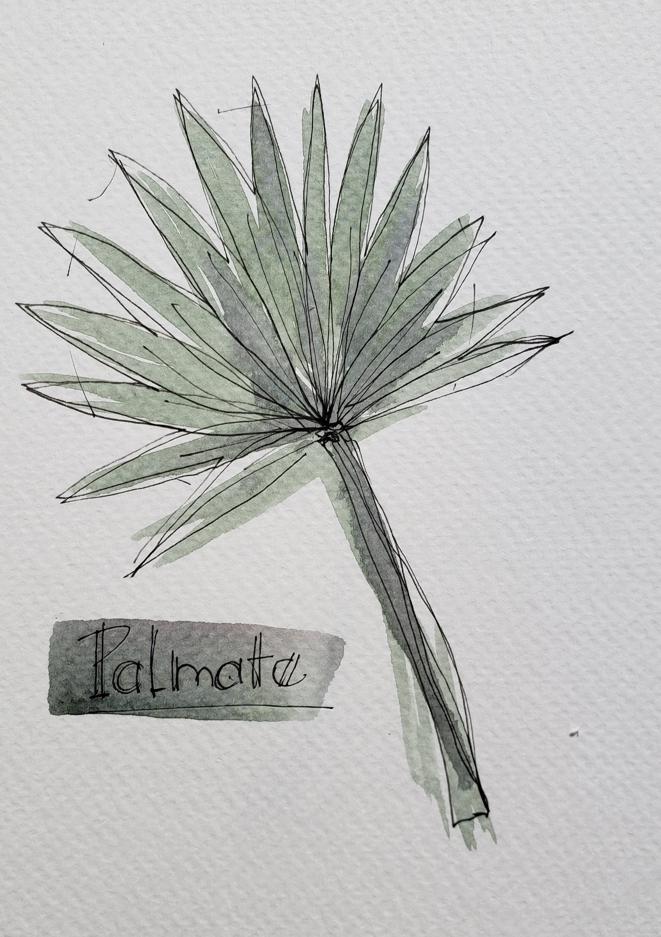 To better know the palm I took some time to research what makes a palm . Palms have a single growing point where all new leaves develop – the crownshaft. This differentiates the palm from coniferous trees that produce laterally and develop bark. The leaf blade another differentiating feature are typically pinnacle or palmate as sketched below.