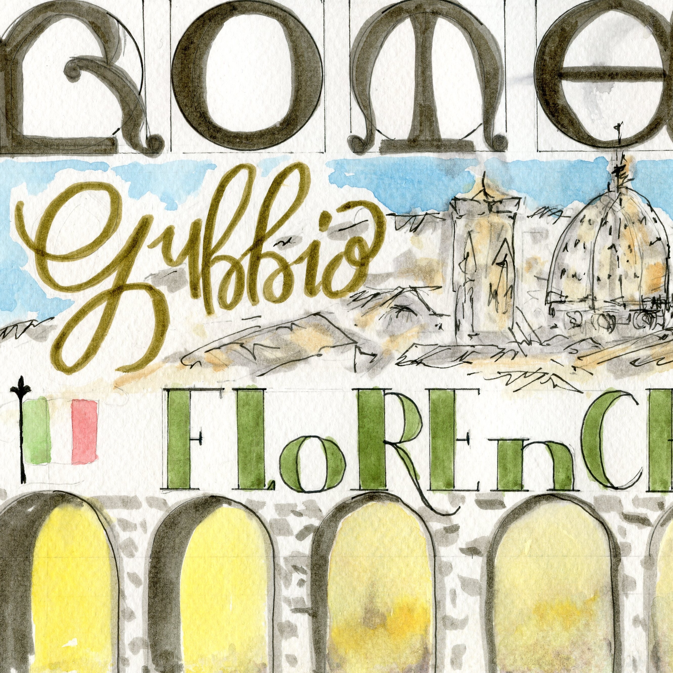Adding words to a sketch is a good practice to understand so Jean Mackay provided us with a few tips for hand-lettering during the Nature Sketching workshop in Italy. I am not much for adding phrases into my work but some simple steps for making lettering look polished were welcome. We spent about 20 minutes on these few techniques that I can & will remember and use!