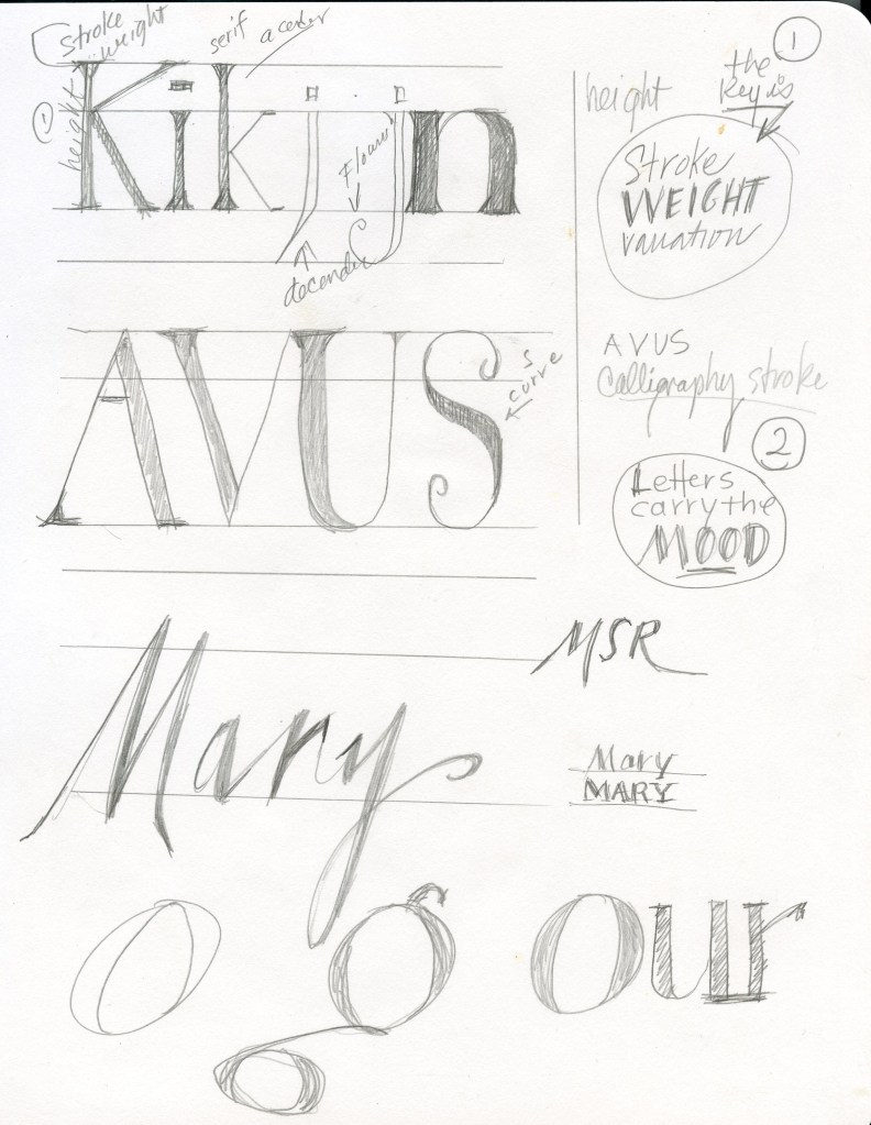 - Add some ‘Stroke Weight Variation’, this is ‘Key’ to an interesting lettering style…and so worth the effort. [look around for a lettering type you like and copy the strokes]