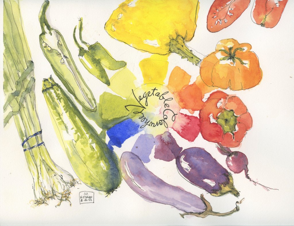 Vegetables are basic shapes and give you the opportunity to practice watercolor skills, mixing colors, doing a wash, glazing
