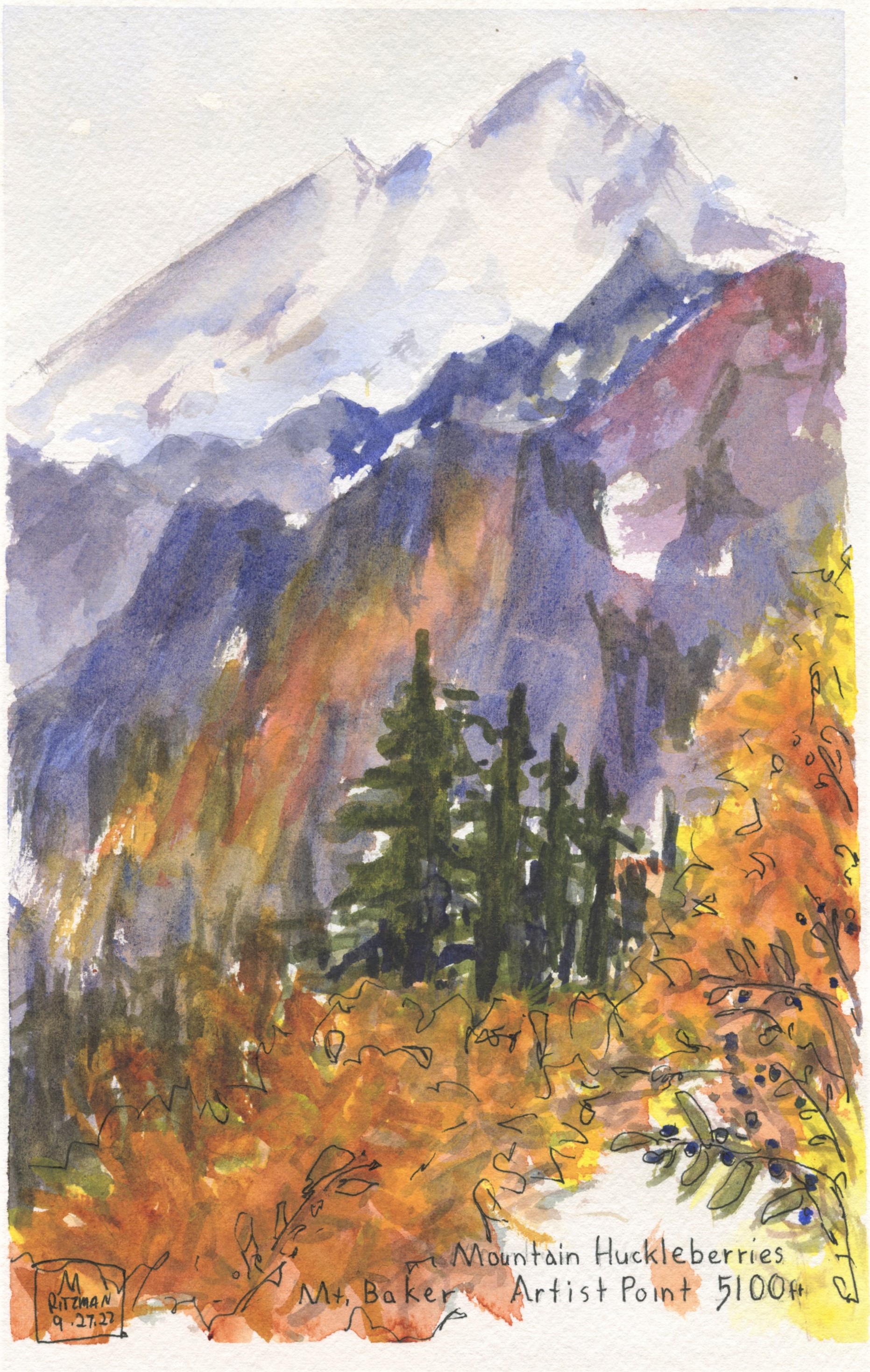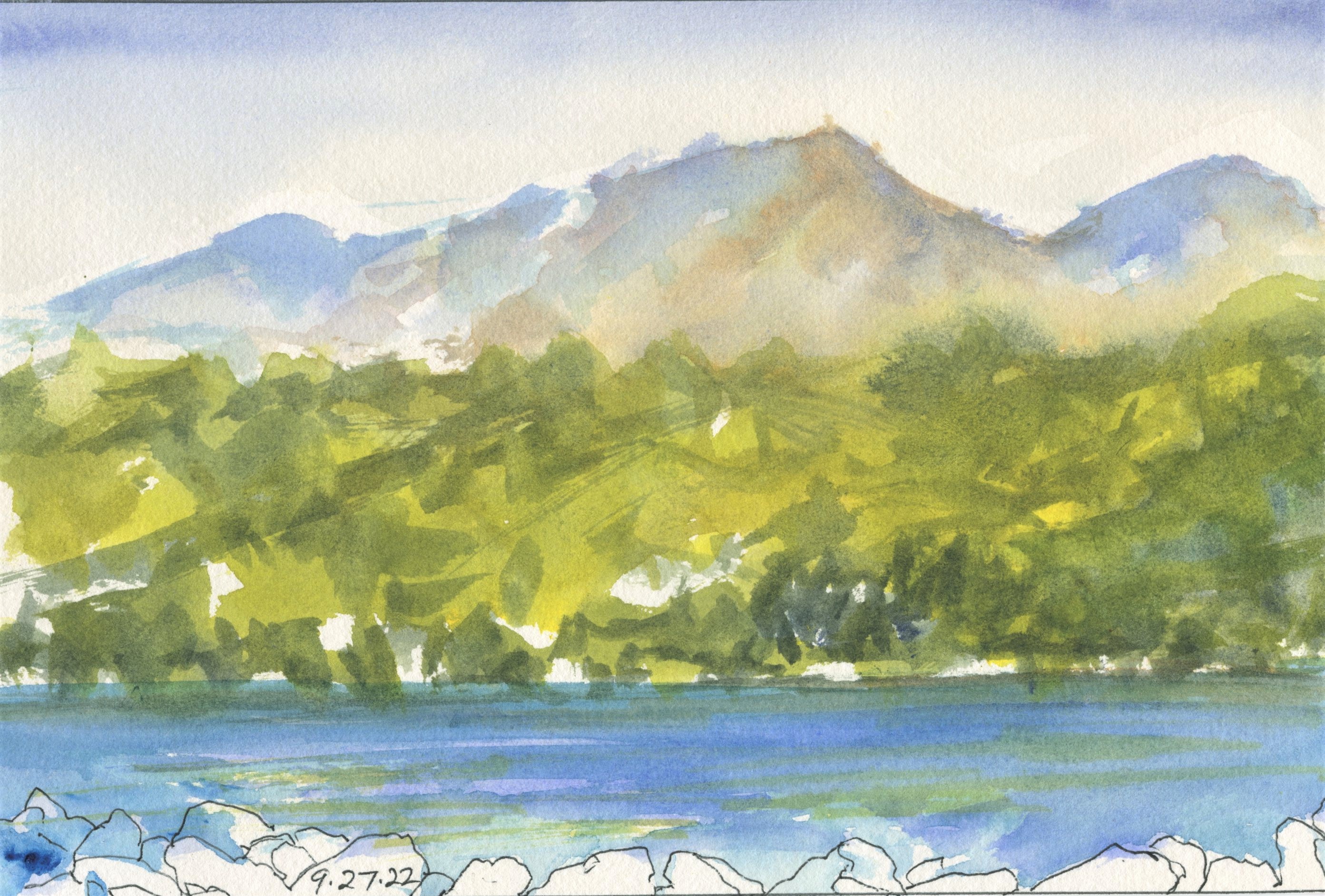 Progress has been made in my understanding of successful watercolor landscape. Sarah Hansen has kept us on track in learning techniques for sky, mid-ground, fore-ground and today total composition. Included are