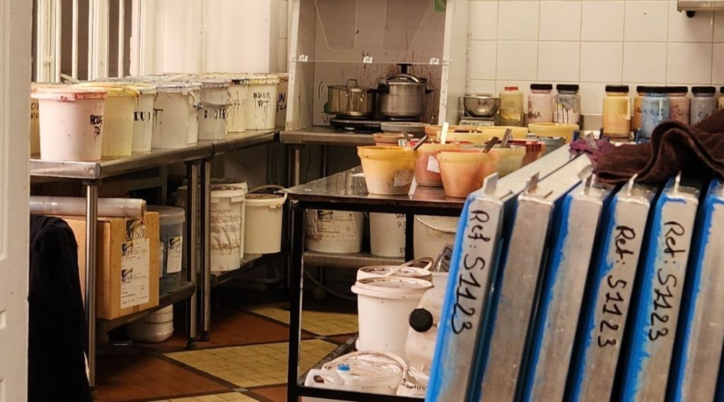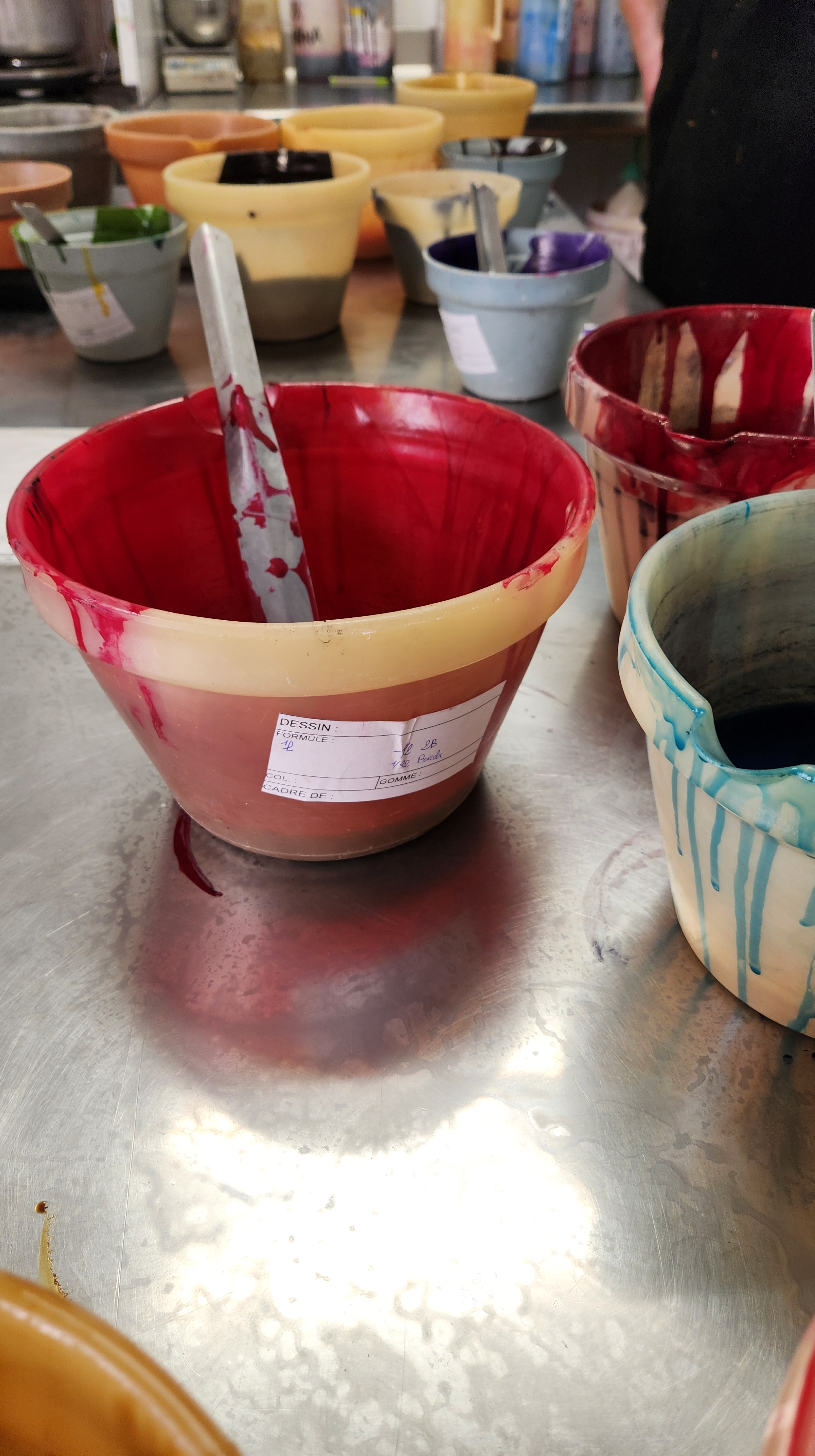 We had the pleasure of learning about printing silk scarves from Gabriele at L’Ateliee de Soierie. He walked us through the screen printing process and explained block printing of silk. Banker turned professional silk artist, Gabriele blends & cooks colors to print the silks.
