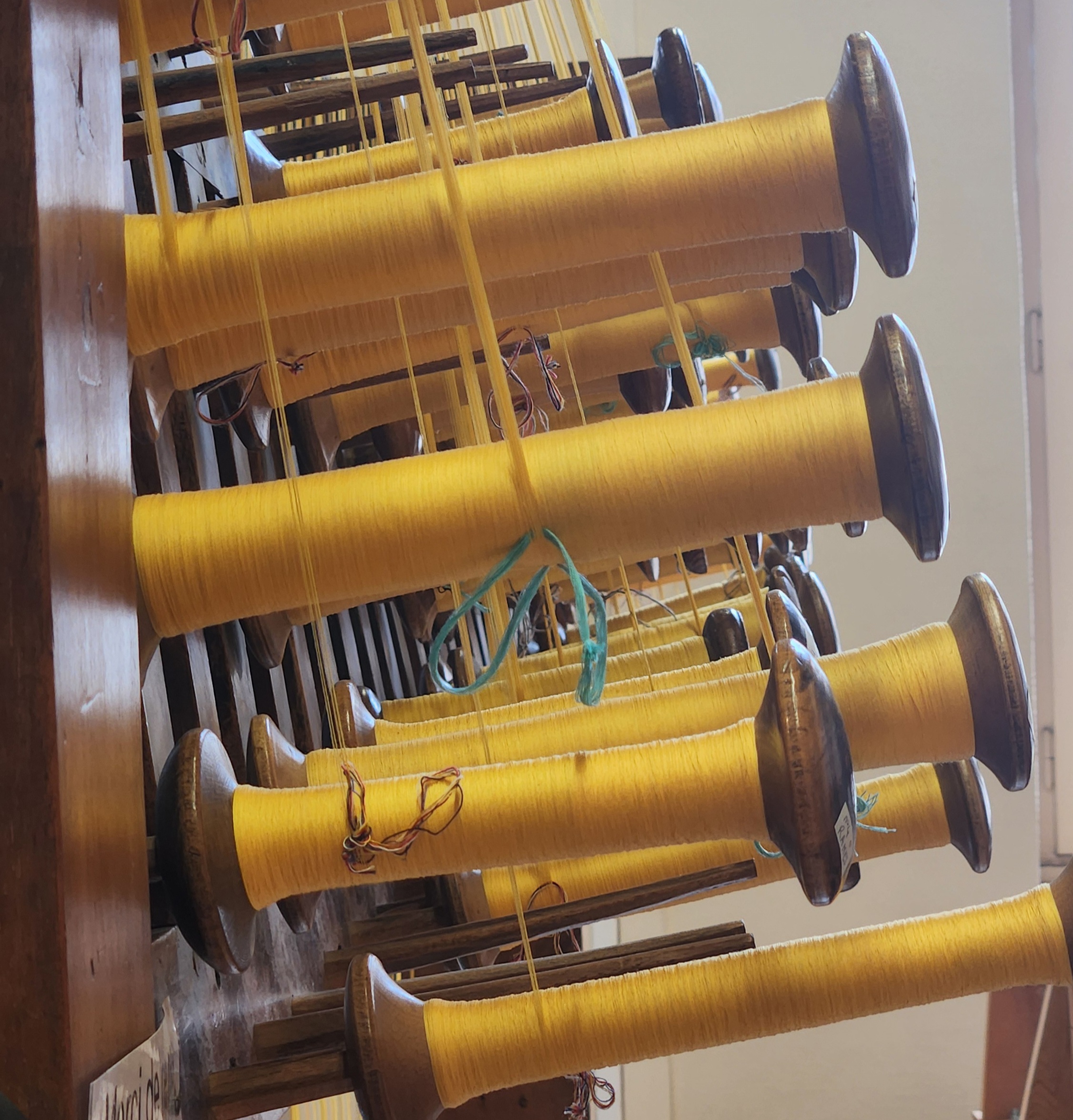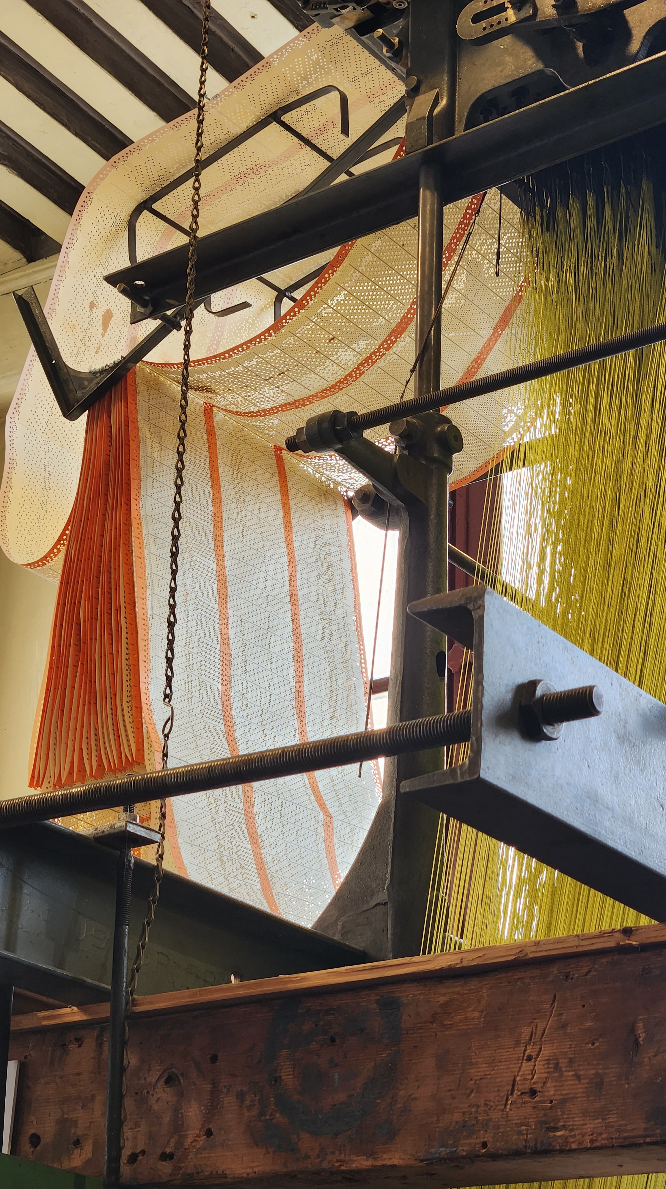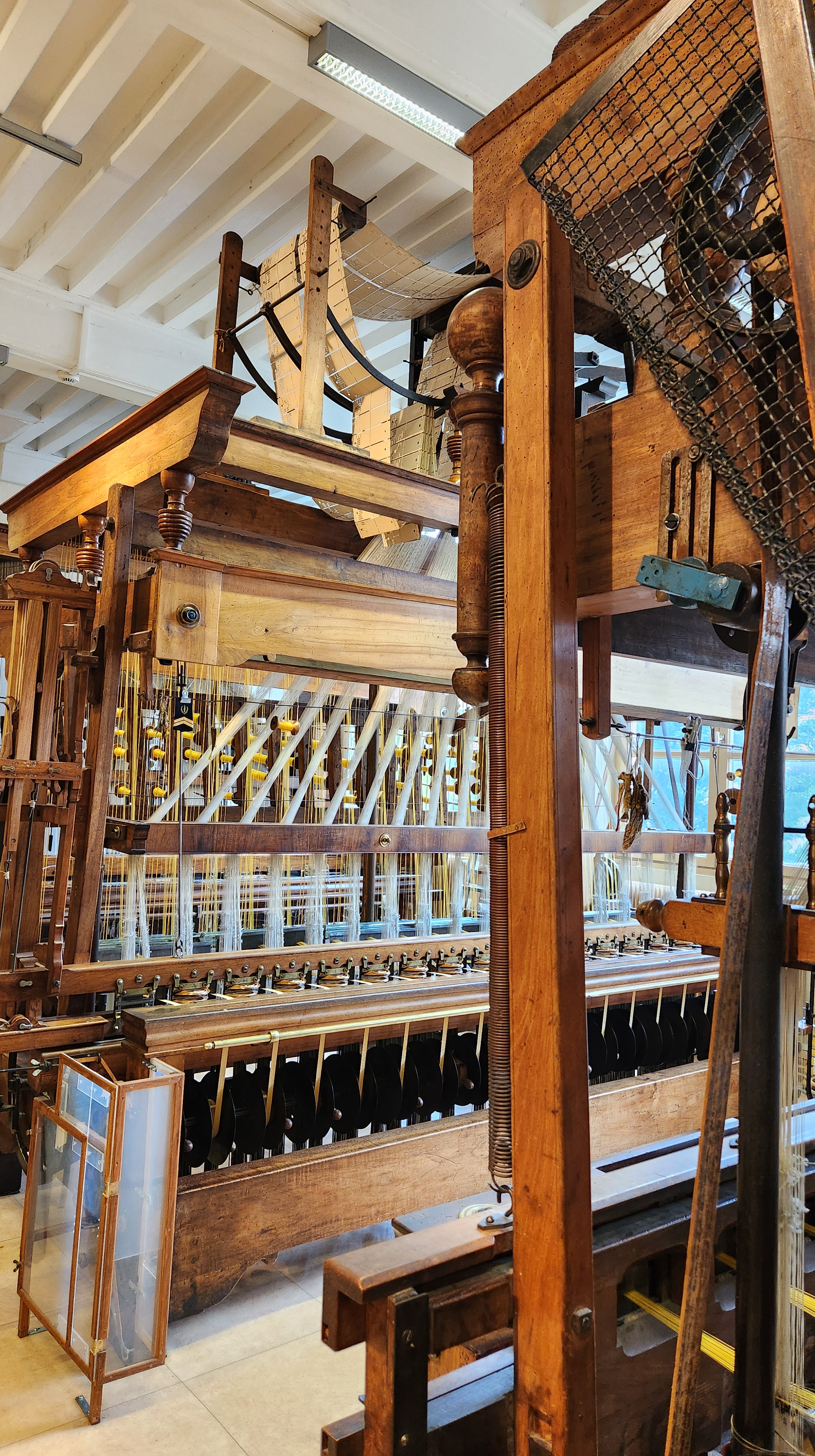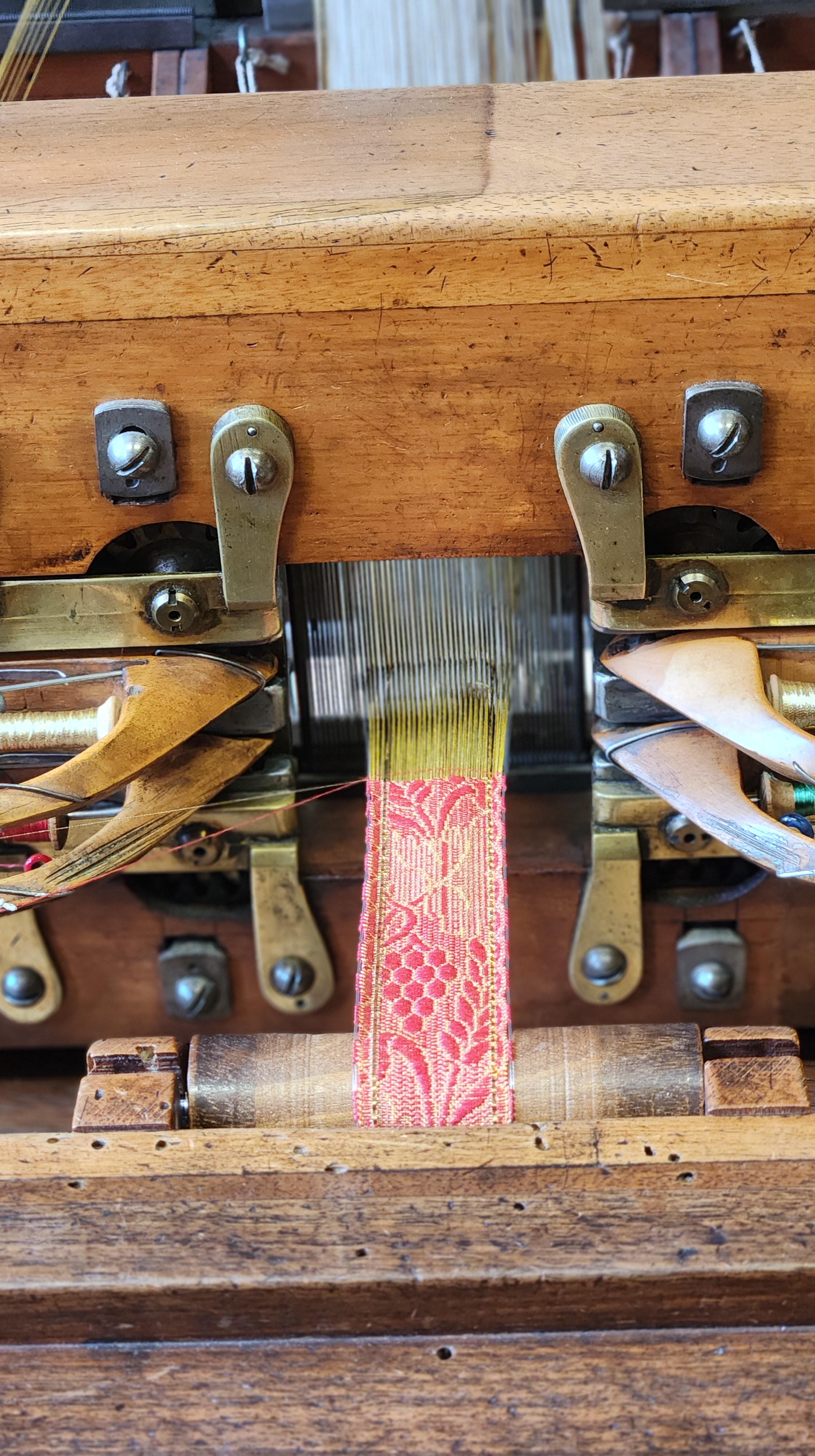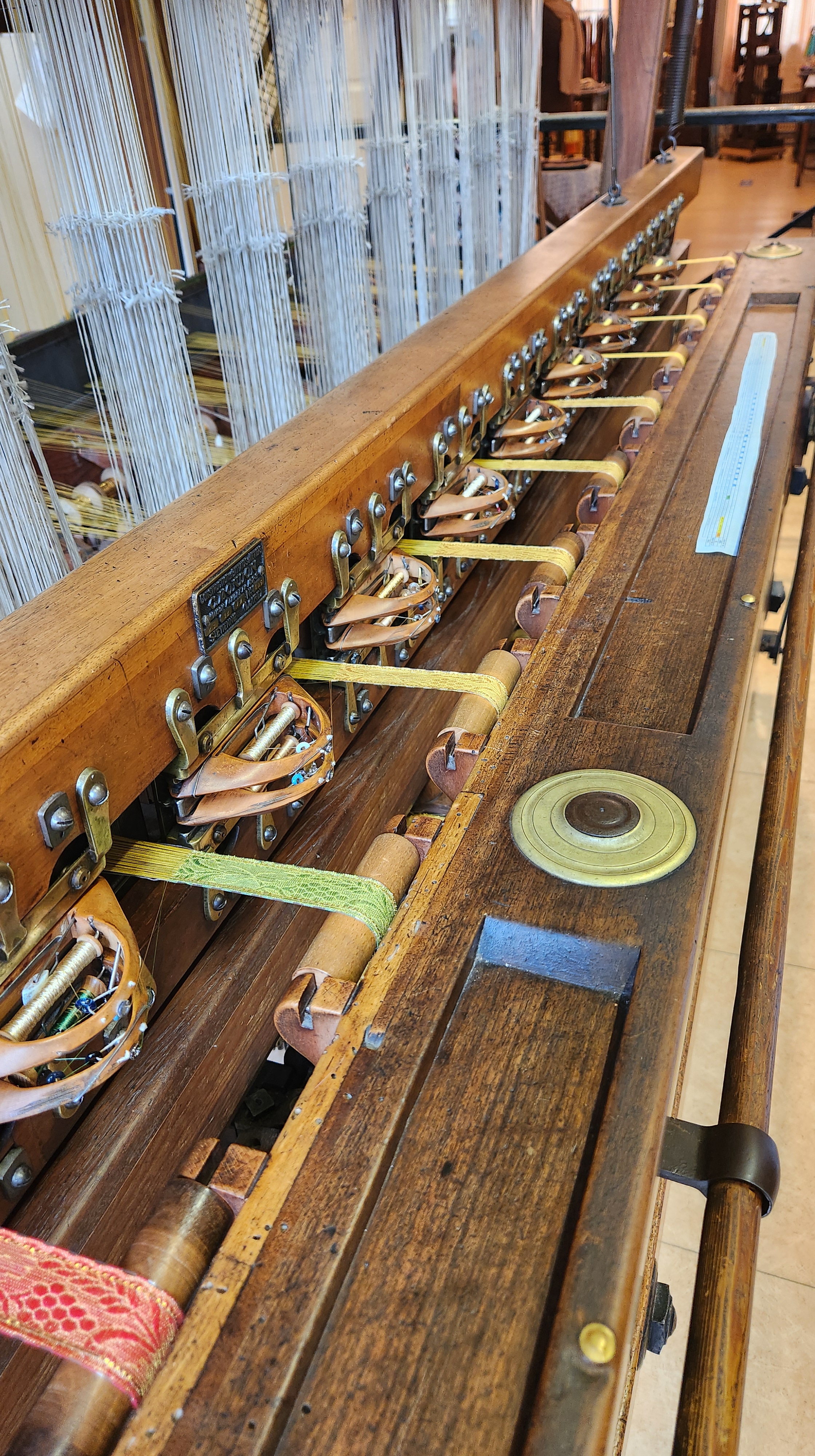 The JAQUARD loom, seen here, is huge and this invention required the weavers to relocate to very tall studios, typically on the hill above the rivers. The looms shown are weaving trims.
