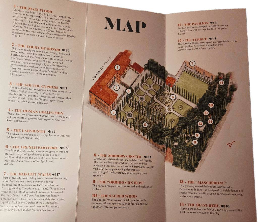 Privately owned by the Giusti family since 15th century. In 1406, this property was next to the Postumian Way (an ancient Roman military road constructed in 148 BC that ran across northern Italy) . The site of the present garden was used for wool dyeing, the Giusti family trade at the time.